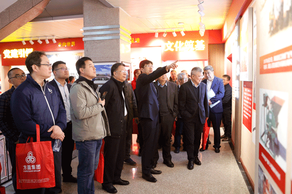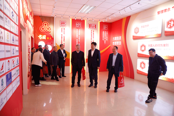 與會代表首先來到科技文化中心,通過沙盤介紹,了解方圓集團概況概貌、產(chǎn)業(yè)布局。步入發(fā)展歷程展廳,通過“艱苦創(chuàng)業(yè)”“奮起騰躍”“創(chuàng)新開拓”“鑄就輝煌”“穩(wěn)健前行”五個篇章,回顧方圓集團從小到大、由弱到強的閃光歷程。